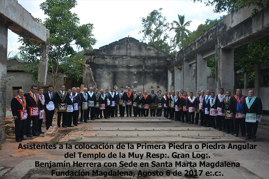 El día 6 de agosto del año 2.017 e∴v∴, se llevó a cabo la Ceremonia de Colocación de la Piedra Fundamental del Templo de la Muy Resp∴ Gr∴ Log∴ Benjamín Herrera con Sede en Santa Marta que se construye el Or∴ de Fundación - Magdalena y el 9 de agosto del año 2.017 e∴v∴.
